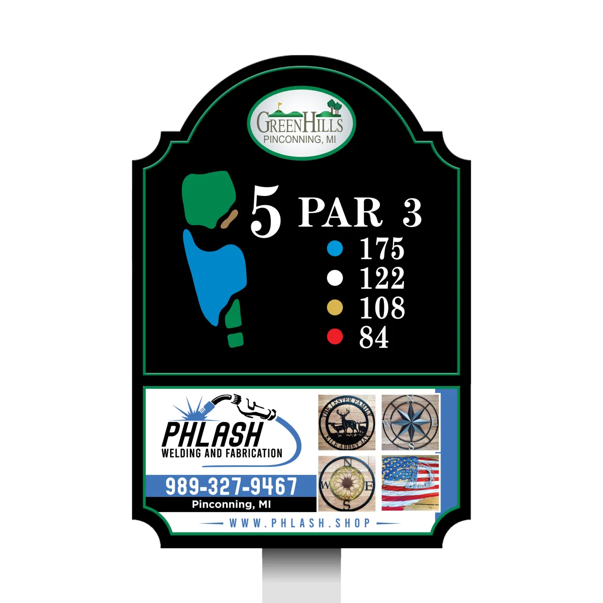 Green Hills Tee Sign - Standard Hole 5